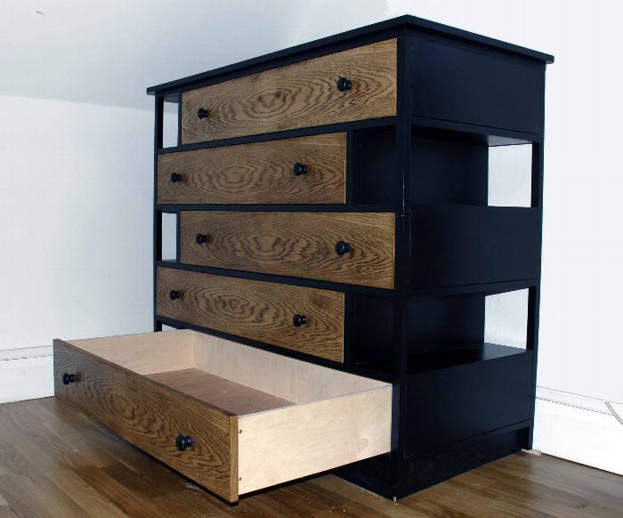 Oak 5 drawer chest with 5 incorporated shelves . Sizes :W1270mm x H1400mmm x D 590mm