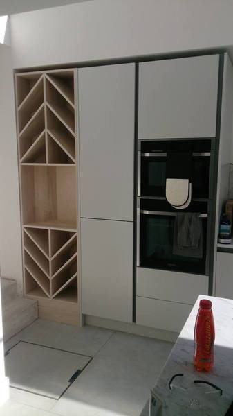 Wine rack made from solid Ash finished in “Iced Ash” mat finish.