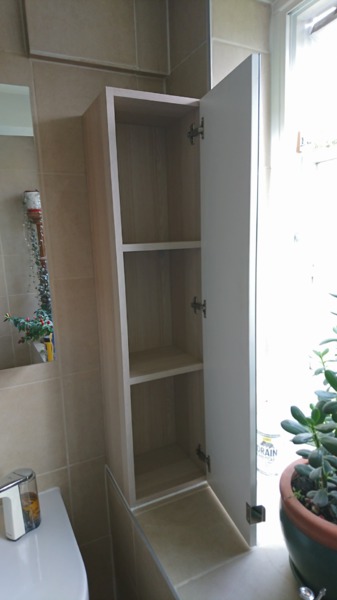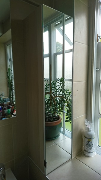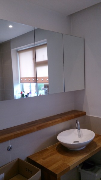 Medicine cabinet with mirror door made from painted Birch plywood.