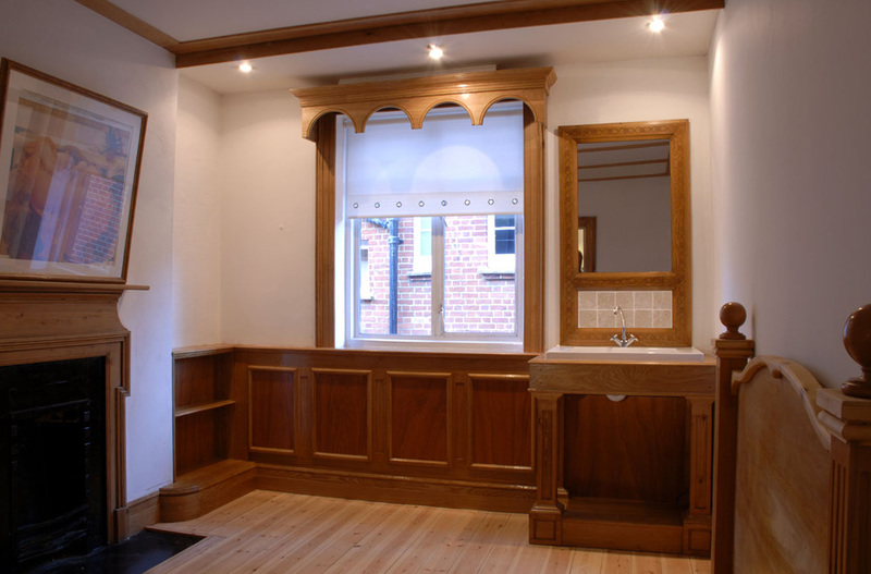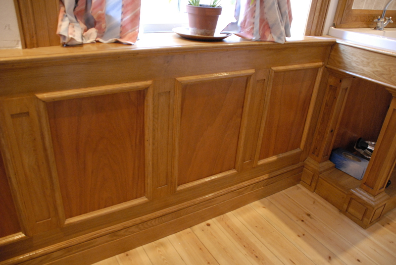Oak wall paneling, shelvs, pelmet, vanity unity
