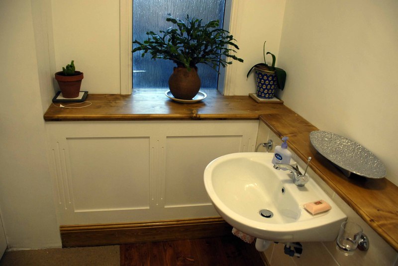 Budget wall panelling and radiator covers with solid wood worktops.