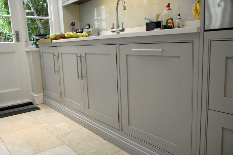 Hand painted replacement Shaker style doors for the existing in-frame kitchen.