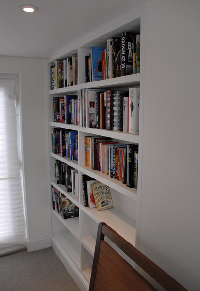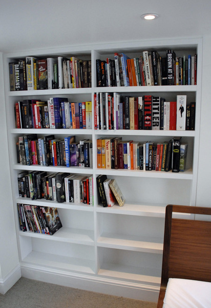 Alcove fitted bookcase with fixed shelves. Hand painted Medite MDF. Sizes: H 2 Meters, W1.5 Meter, D 190mm